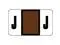 These Safeguard Compatible "J" Labels feature a wrap-around solid Brown bar and a Black "J" character printed on a White background. Label Size: 1-5/8" W x 15/16" H, Before Folding.