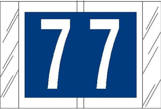 These Tabbies 11000 Compatible "7" Numeric Labels feature a wrap-around solid Navy Blue bar with a white reversed 7 printed on a white background. Label Size: 1-1/2" W x 1" H, Before Folding. Laminated for protection.