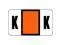These Safeguard Compatible "K" Labels feature a wrap-around solid Orange bar and a Black "K" character printed on a White background. Label Size: 1-5/8" W x 15/16" H, Before Folding.
