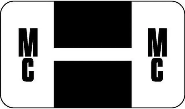 These Safeguard Compatible "Mc" Labels feature a wrap-around Black bar with a single White stripe and a Black "Mc" character printed on a White background. Label Size: 1-5/8" W x 15/16" H, Before Folding.