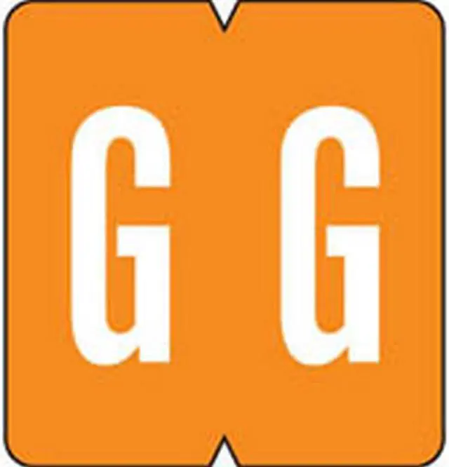 These VRE/GBS 8850 Series Compatible "G" Polylaminated stock labels with a White letter "G" on an Orange background. Label Size: 1.3" W x 1-1/4" H, Before Folding.