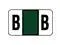 These Jeter 7200 Compatible "B" Labels feature a wrap-around Dark Green-colored bar and a black "B" printed on a white background. Label Size: 1 5/8" W x 15/16" H, Before Folding. Laminated for protection.