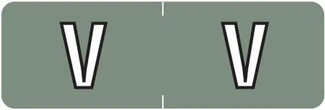 These Barkley ABAM Compatible Mini "V" Labels feature a wrap-around solid Gray bad and a colored a White "V" outlined in Black and printed on a White background. The Gray color is compatible with Barkley end tab filing systems. Each label has printed alignment marks for easy placement.
