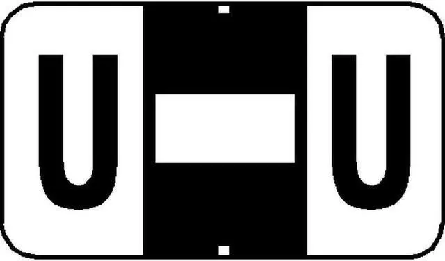 These Jeter 7200 Compatible "U" Labels feature a wrap-around Black-colored bar, with a white-colored bar in the middle 1/3, and a colored "U" printed on a white background. Label Size: 1 5/8" W x 15/16" H, Before Folding. Laminated for protection.