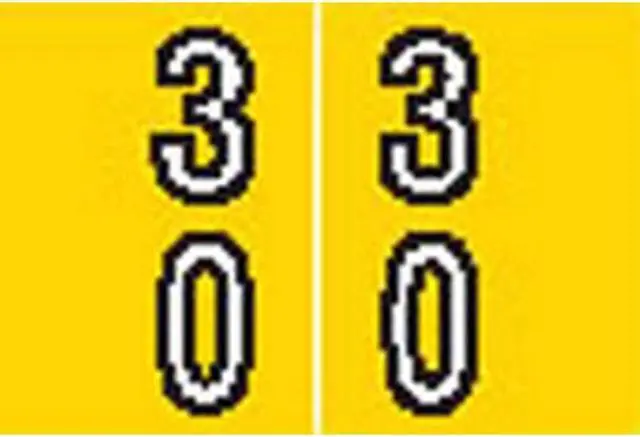 These Barkley DAVM Compatible "-0" Double Digit Labels are perfect for straight numeric color coding systems. The Yellow color is defined by - being the top numeric number. Each roll contains 50 of each of the 10, 2-digit