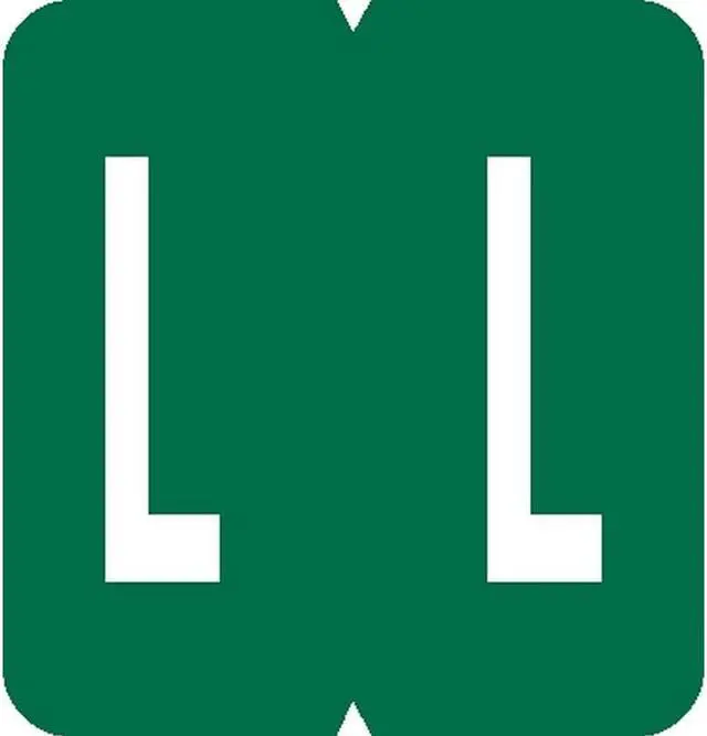 These GBS Compatible "L" Labels feature a wrap-around solid Dark Green bar and a white "L" printed on a white background. Each label has a printed alignment mark, which allows for easy label placement.