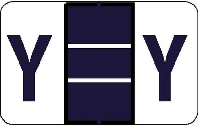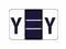 These Tab 1383 Series Compatible "Y" Labels feature a wrap-around Violet bar with two horizontal White line and a Violet "Y" printed on a white background. Label Size: 1 1/4" W x 1" H, Before Folding. Vinyl for Protection.
