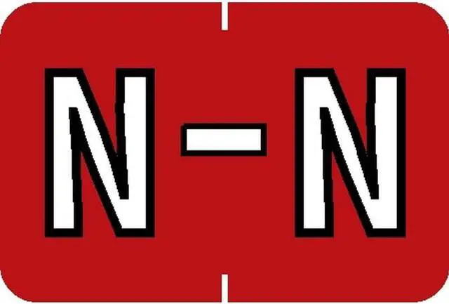 These Barkley ABKM Compatible "N" Labels feature a wrap-around solid Red bar and a White "N" outlined in Black and printed on a white background. Label Size: 1-1/2" W X 1" H, Before Folding. Laminated for Protection