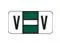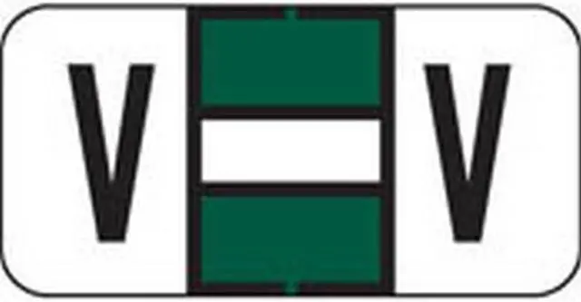 These Jeter 2900 Series Compatible "V" Polylaminated Labels feature a wrap-around Black bar with a Black "V" printed on a White, and Dark Green background. Label Size: 1-1/2" W x 3/4" H, Before Folding.