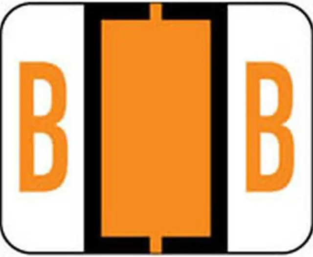 These Smead BCCR/BCCS Series Compatible "B" Polylaminated Labels feature a wrap-around Black bar with a Fluorescent Orange "B" printed on a White background. Label Size: 1-1/4" W x 1" H, Before Folding.