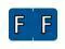 These Barkley ABKM Compatible "F" Labels feature a wrap-around solid Blue bar and a White "F" outlined in Black and printed on a white background. Label Size: 1-1/2" W X 1" H, Before Folding. Laminated for Protection