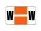These Safeguard Compatible "W" Labels feature a wrap-around Orange bar with a single White stripe and a Black "W" character printed on a White background. Label Size: 1-5/8" W x 15/16" H, Before Folding.