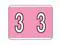 Kardex Compatible "3" Labels feature a wrap-around solid Pink bar with a White reversed "3" outlined in Black and printed on a White background. Label Size: 1-1/2" W x 1-1/4" H, Before Folding.
