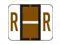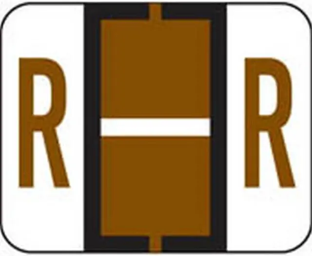 These Smead BCCR/BCCS Series Compatible "R" Polylaminated Labels feature a wrap-around Black bar with a Brown "R" printed on a White background. Label Size: 1-1/4" W x 1" H, Before Folding.