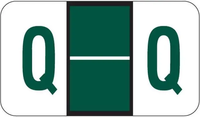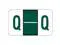 These POS Compatible "Q" Labels feature a wrap-around Dark Green bar with a horizontal White line and a Dark Green "Q" printed on a white background. Label Size: 1 5/8" W X 15/16" H, Before Folding