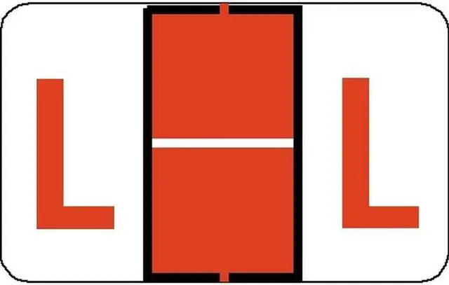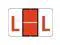 These Tab 1383 Series Compatible "L" Labels feature a wrap-around Orange bar with a single horizontal White line and a Orange "L" printed on a white background. Label Size: 1 1/4" W x 1" H, Before Folding. Vinyl for Protection.