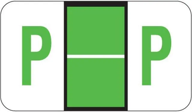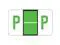 These POS Compatible "P" Labels feature a wrap-around Light Green bar with a horizontal White line and a Light Green "P" printed on a white background. Label Size: 1 5/8" W X 15/16" H, Before Folding