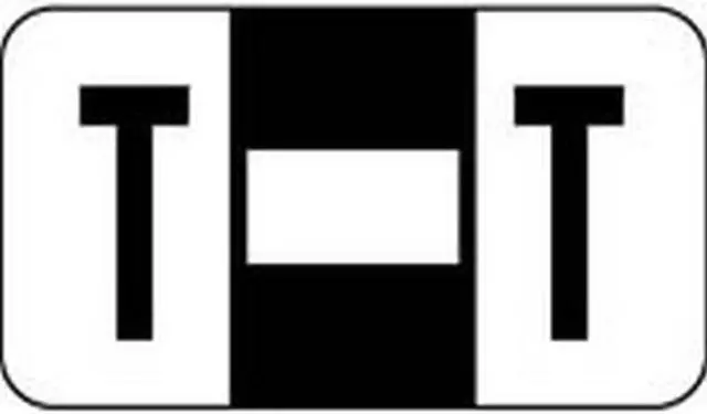 These POS 2000 Series Compatible "T" Polylaminated Labels feature a wrap-around Black bar with a Black "T" printed on a White, and Black background. Label Size: 1-5/8" W x 15/16" H, Before Folding.