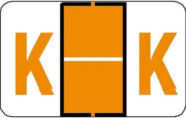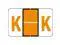 These Tab 1383 Series Compatible "K" Labels feature a wrap-around Light Orange bar with a single horizontal White line and a Light Orange "K" printed on a white background. Label Size: 1 1/4" W x 1" H, Before Folding. Vinyl for Protection.