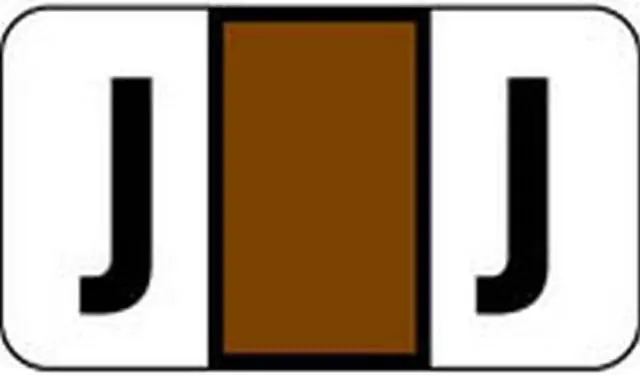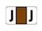 These POS 2000 Series Compatible "J" Polylaminated Labels feature a wrap-around Black bar with a Black "J" printed on a White, and Brown background. Label Size: 1-5/8" W x 15/16" H, Before Folding.