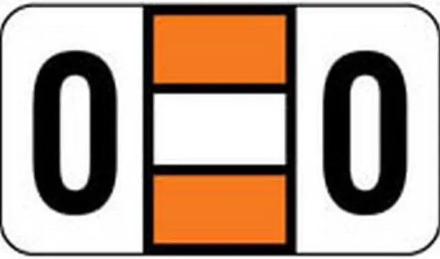 These POS 2000 Series Compatible "O" Polylaminated Labels feature a wrap-around Black bar with a Black "O" printed on a White, and Orange background. Label Size: 1-5/8" W x 15/16" H, Before Folding.