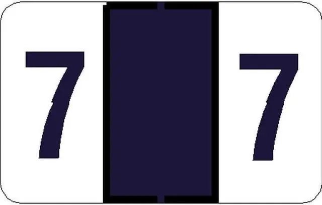 These Tab Compatible Numeric "7" Labels feature a wrap-around solid Violet bar and a Violet 7 printed on a white background. These labels are compatible with Tab Products end tab filing systems. Label Size: 1 1/4" W x 1" H, Before Folding.