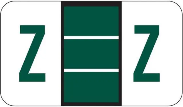 These POS Compatible "Z" Labels feature a wrap-around Dark Green bar with 2 horizontal White lines and a Dark Green "Z" printed on a white background. Label Size: 1 5/8" W X 15/16" H, Before Folding
