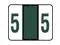 These Tab Compatible Numeric "5" Labels feature a wrap-around solid Dark Green bar and a Dark Green 5 printed on a white background. These labels are compatible with Tab Products end tab filing systems. Label Size: 1 1/4" W x 1" H, Before Folding.