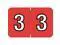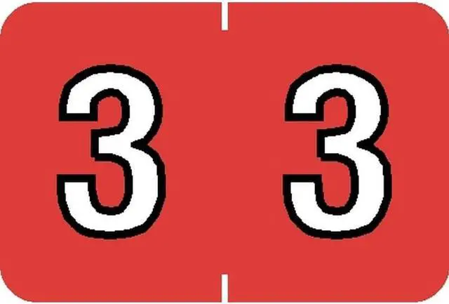 These Barkley NBKM Compatible Numeric "3" Labels feature a wrap-around solid Orange bar and a White "3" outlined in Black and printed on a white background. Label Size: 1 1/2" W x 1" H, Before Folding.