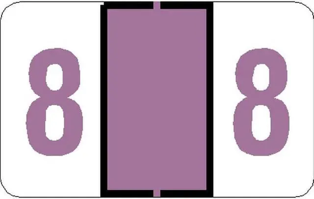These Tab Compatible Numeric "8" Labels feature a wrap-around solid Light Pink bar and a Light Pink 8 printed on a white background. These labels are compatible with Tab Products end tab filing systems. Label Size: 1 1/4" W x 1" H, Before Folding.