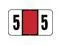 These Jeter 7300 Compatible Numeric "5" Labels feature a wrap-around solid Red bar and a Black "5" printed on a white background. Label Size: 1-5/8" W X 15/16" H, Before Folding.