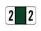 These Jeter 7300 Compatible Numeric "2" Labels feature a wrap-around solid Dark Green bar and a Black "2" printed on a white background. Label Size: 1-5/8" W X 15/16" H, Before Folding.