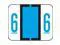 These Smead BCCRN/BCCSN series Compatible Numeric "6", Polylaminated Labels feature a wrap around Black bar with a Light Blue "6" printed on a White, and Light Blue background. Label Size: 1-1/4" W x 1" H, Before Folding.