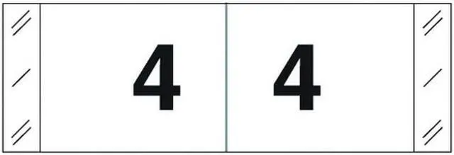 These Tabbies 11830 Compatible Numeric "4" Labels feature a wrap-around White bar with a Black "4". Label Size: 1-1/2" W x 1/2" H, Before Folding. Laminated for protection.