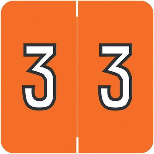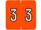 These Barkley FNBRM Compatible Numeric "3" Labels feature a wrap-around solid Orange bar and a White "3". Label Size: 1-1/2" W x 1-1/2" H, Before Folding. Laminated for Protection