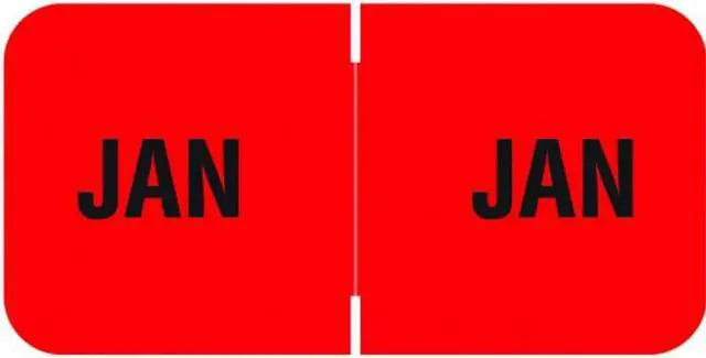 These Barkley FMBLM Series Compatible "Jan" Month Labels are ideal for coding folders to indicate when a file was created or to signal when the file should be moved to inactive storage. These "Jan" labels are solid Red labels with "Jan" printed in Black.