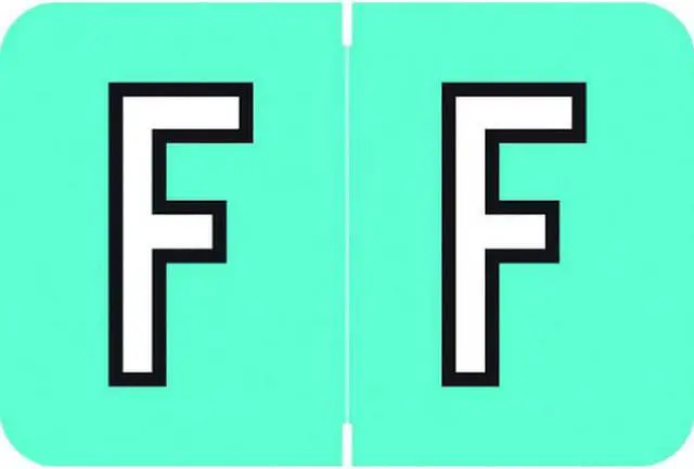 These Barkley ABKM Compatible "F" Labels features a White "F" outlined in Black and printed on a Light Blue background. Label Size: 1-1/2" W X 1" H, Before Folding. Laminated for Protection