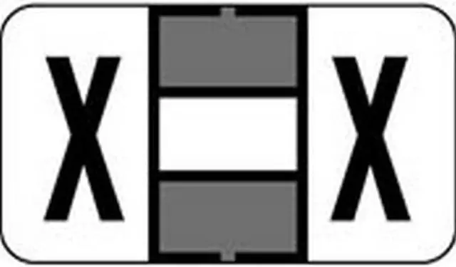 These POS 2000 Series Compatible "X" Polylaminated Labels feature a wrap-around Black bar with a Black "X" printed on a White, and Gray background. Label Size: 1-5/8" W x 15/16" H, Before Folding.