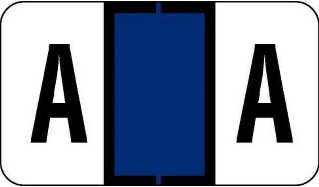 These Jeter 2500 Compatible "A" Labels feature a wrap-around Navy Blue-colored bar and a colored "A" printed on a white background. Label Size: 1 5/8" W x 15/16" H, Before Folding. Laminated for protection.