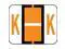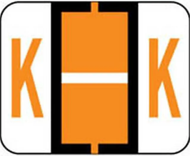 These Smead BCCR/BCCS Series Compatible "K" Polylaminated Labels feature a wrap-around Black bar with a Fluorescent Orange "K" printed on a White background. Label Size: 1-1/4" W x 1" H, Before Folding.