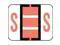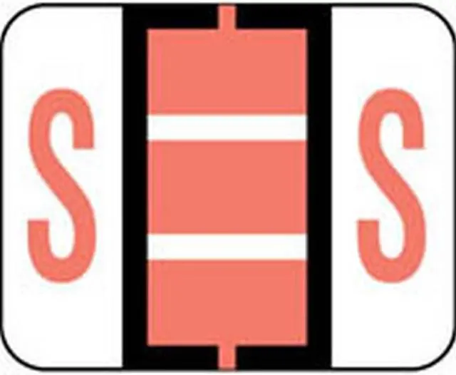 These Smead BCCR/BCCS Series Compatible "S" Polylaminated Labels feature a wrap-around Black bar with a Salmon "S" printed on a White background. Label Size: 1-1/4" W x 1" H, Before Folding.