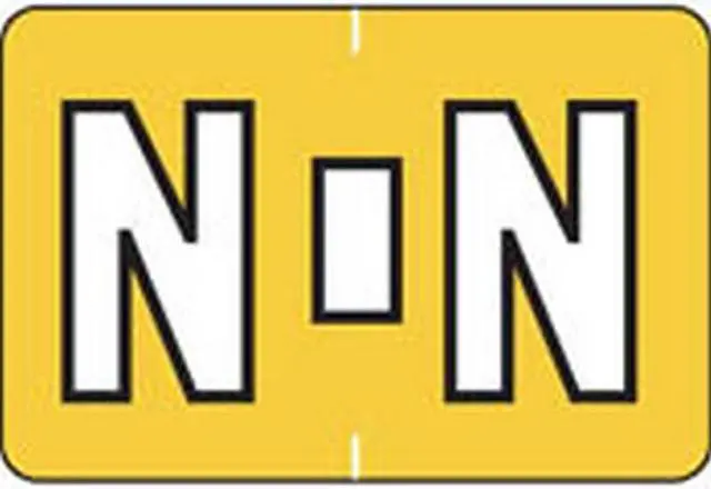 These Colwell Jewel Tone Series Compatible Alpha "N", Polylaminated Labels with a White"N" printed on a Yellow background. Label Size: 1 1/2" W x 1" H, Before Folding.