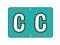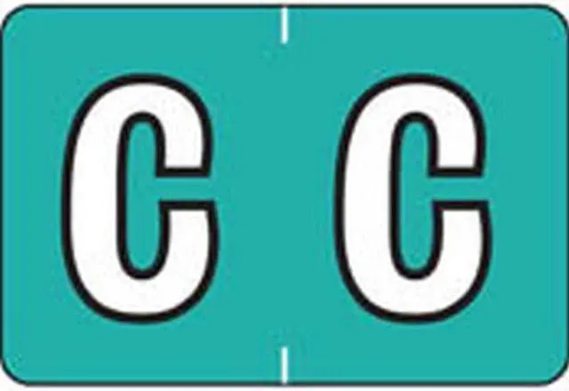 These Colwell Jewel Tone Series Compatible Alpha "C", Polylaminated Labels with a White"C" printed on a Turquoise background. Label Size: 1 1/2" W x 1" H, Before Folding.
