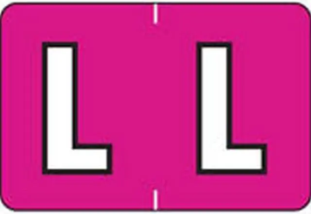 These Colwell Jewel Tone Series Compatible Alpha "L", Polylaminated Labels with a White"L" printed on a Magenta background. Label Size: 1 1/2" W x 1" H, Before Folding.