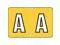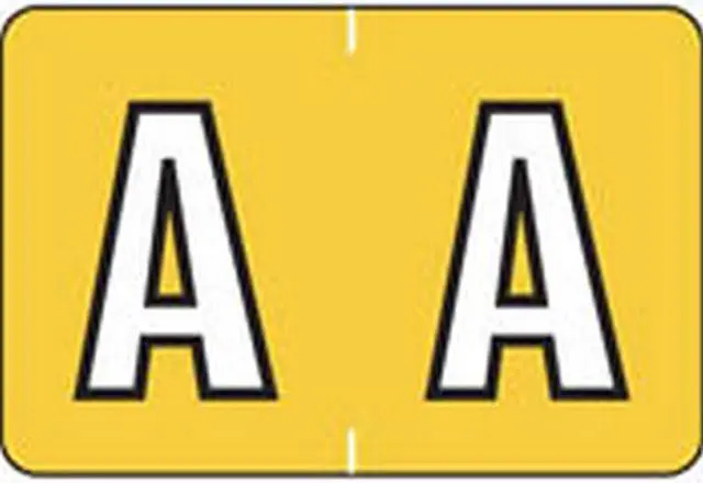 These Colwell Jewel Tone Series Compatible Alpha "A", Polylaminated Labels with a White"A" printed on a Yellow background. Label Size: 1 1/2" W x 1" H, Before Folding.