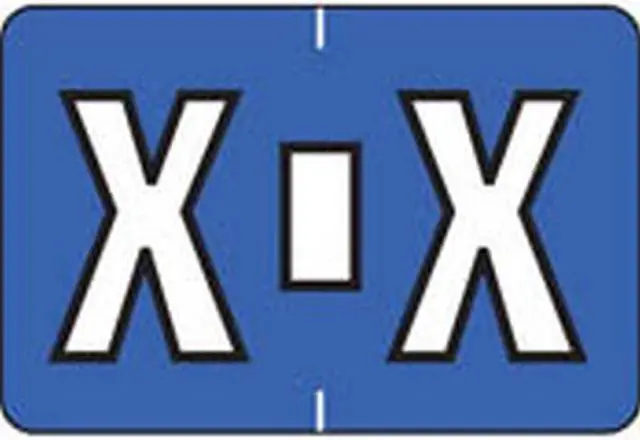 These Colwell Jewel Tone Series Compatible Alpha "X", Polylaminated Labels with a White"X" printed on a Dark Blue background. Label Size: 1 1/2" W x 1" H, Before Folding.