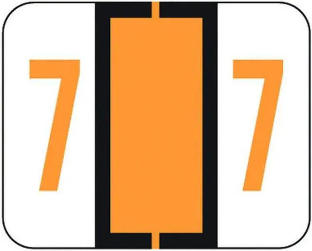 These File Doctor FDNV Compatible Numeric "7" Labels feature a wrap-around White, and Fluorescent Orange bar with a Fluorescent Orange "7". Label Size: 1-1/4" W x 1" H, Before Folding. Laminated for Protection