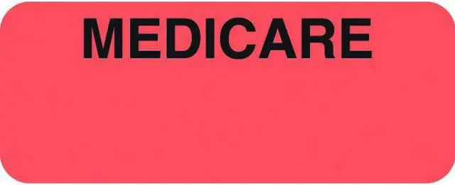 Insurance Labels, MEDICARE - Fluorescent Red, 1-7/8" W X 3/4" H (Roll of 500)