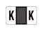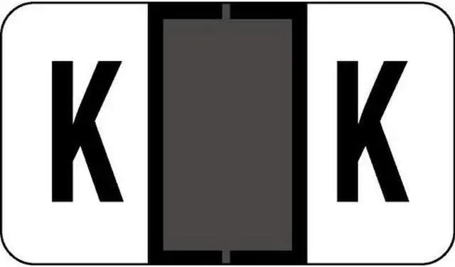 These Jeter 2500 Compatible "K" Labels feature a wrap-around Gray-colored bar and a colored "K" printed on a white background. Label Size: 1 5/8" W x 15/16" H, Before Folding. Laminated for protection.