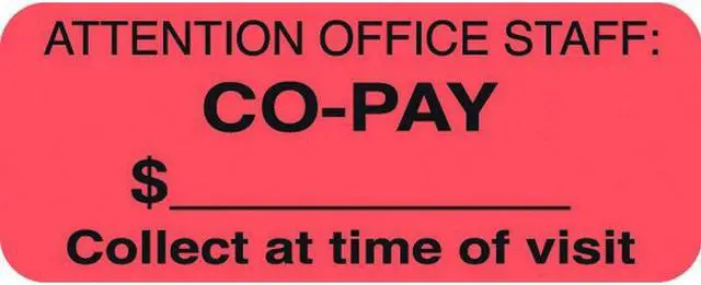 Insurance Labels, CO-PAY - Fluorescent Red, 1-7/8" W X 3/4" H (Roll of 500)